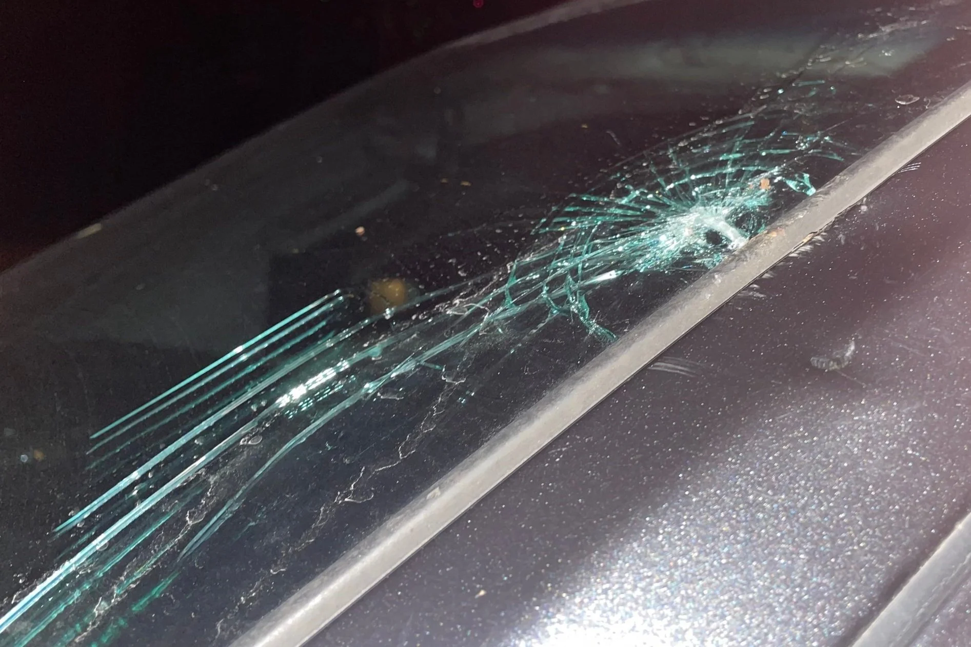 Looking up, I noticed a large spiderweb in my windshield. Upon further examination, both pillars were dented as well. Now several days later, the truck is still sitting in my driveway waiting for an insurance adjuster to tell me my next steps. I am unable to drive it safely with the windshield cracked as it is. Not only would I not be able to see clearly, but any front end collision that could happen would cause it to shatter on me and anyone in the vehicle.
